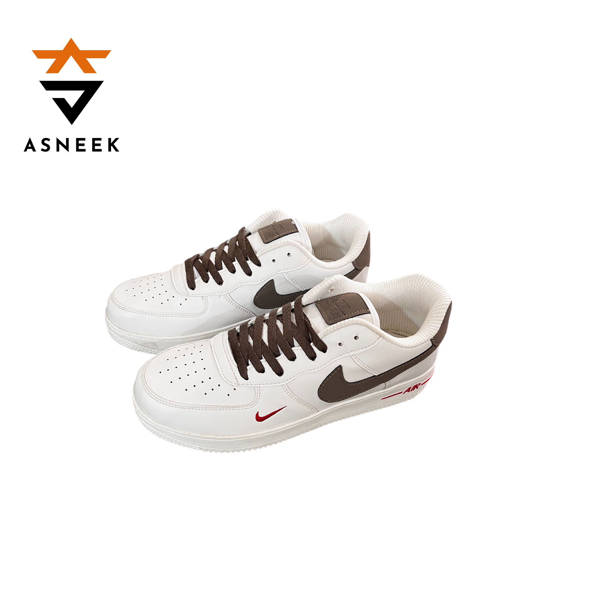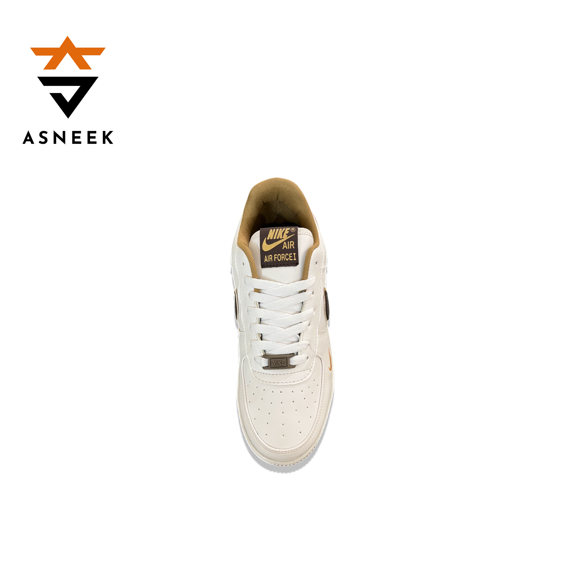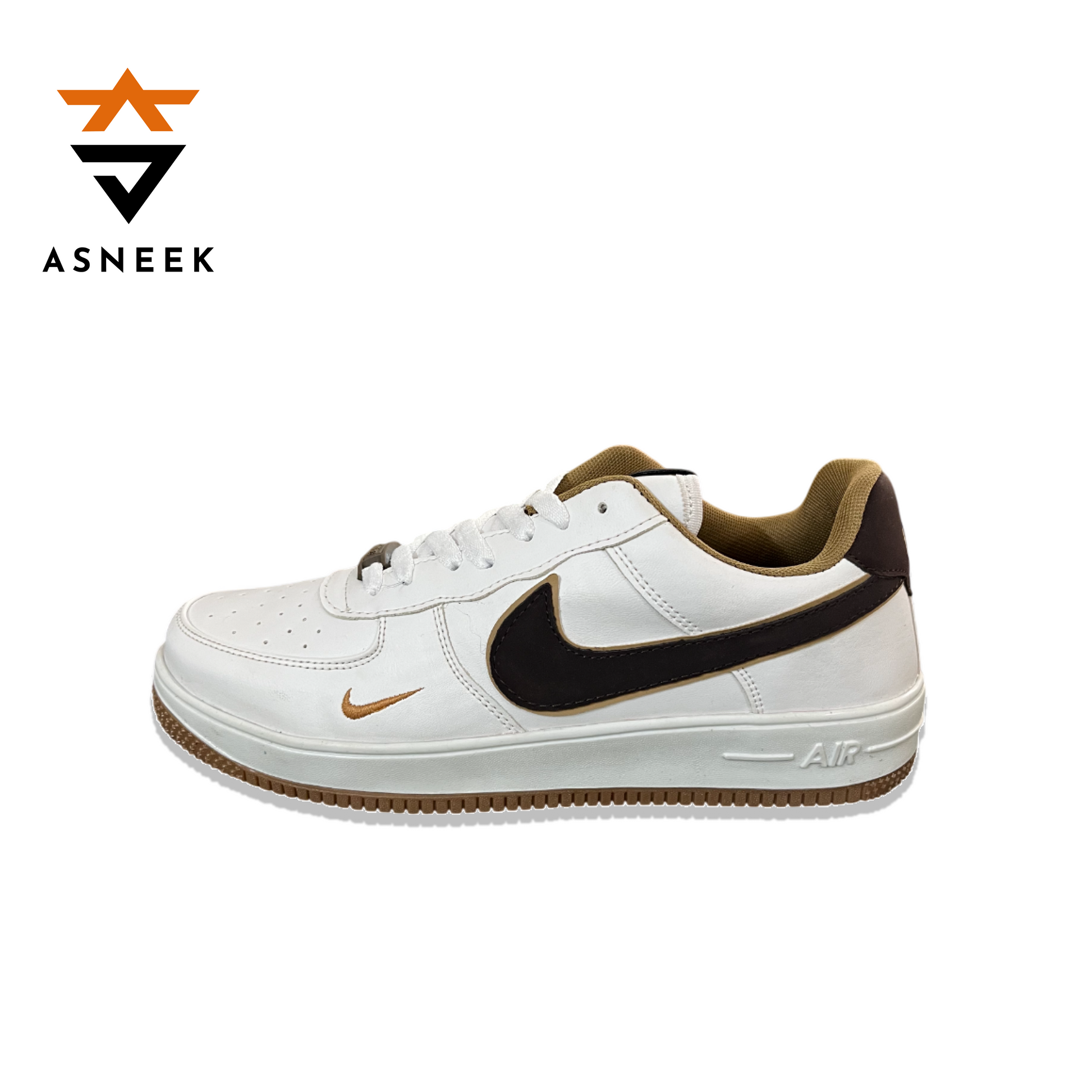 Timeless and versatile, these Nike sneakers feature a clean white upper accented with a bold black swoosh, brown lining, and a subtle gum sole. A small bronze mini swoosh adds a touch of character, making them perfect for casual and streetwear looks.